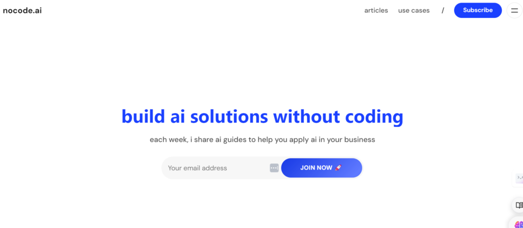 Nocode.ai, for instance, is a platform that offers resources and guides for building AI solutions without the need for coding. It provides weekly AI guides to assist businesses in applying AI effectively.