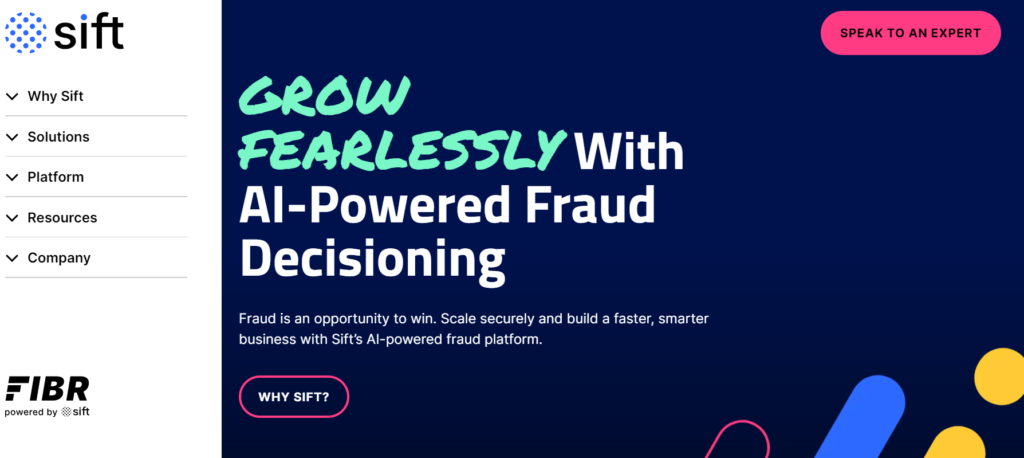 Sift, for instance, offers an AI-powered fraud decision-making platform designed to help businesses scale securely. Their platform leverages AI to turn fraud challenges into opportunities for secure, scalable growth.