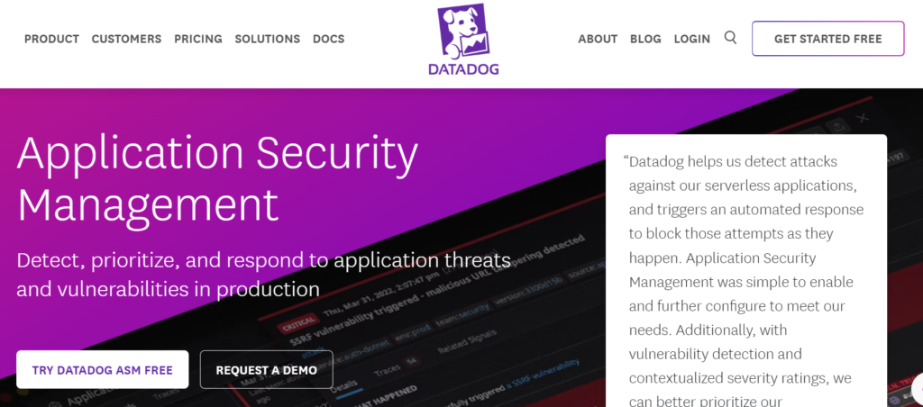 Datadog’s Application Security Management, for example, provides solutions for managing application security risks. It offers continuous, real-time monitoring of vulnerabilities and threats against web applications, serverless applications, and APIs in production.