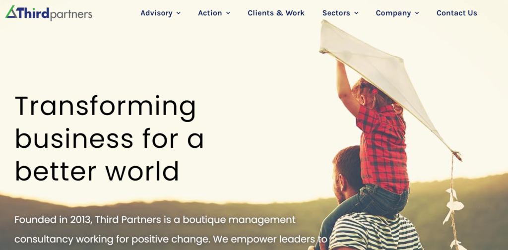 Third Partners, for example, is a boutique management consultancy specializing in ESG (Environmental, Social, and Governance) consulting and sustainability services.