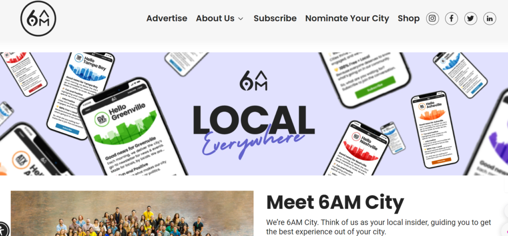 6AM City, to illustrate, is a hyper-local media platform that delivers daily email newsletters focusing on positive and impactful news and events within specific cities.