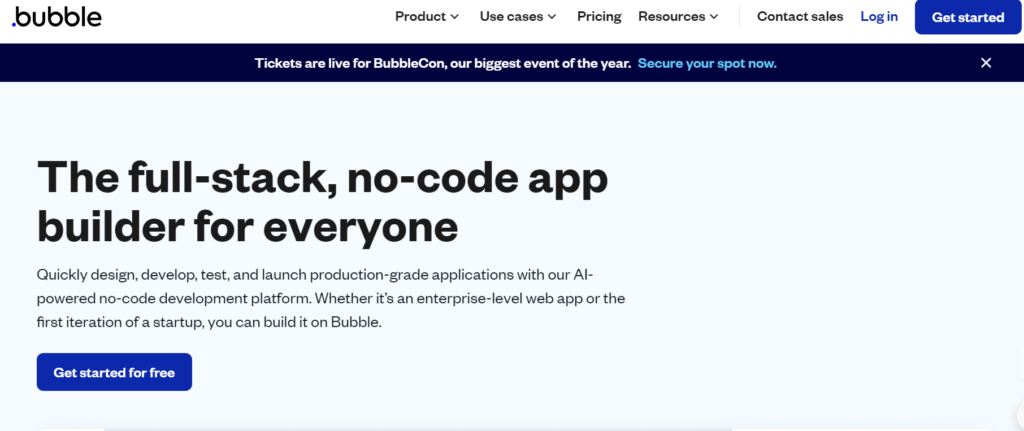 Bubble is an AI-powered, no-code development platform that allows users to quickly design, develop, test, and launch production-grade applications. Bubble simplifies the app creation process with drag-and-drop functionality and customizable templates. It offers a full-stack solution with built-in database management, collaboration tools, and secure hosting.