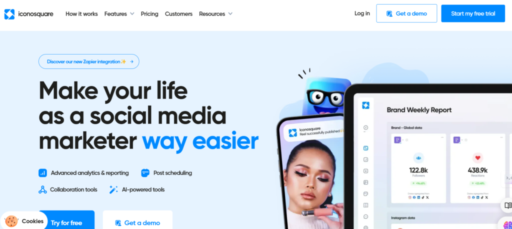 Iconosquare, for instance, offers advanced analytics, reporting, and post-scheduling for social media marketers, featuring Zapier integration.