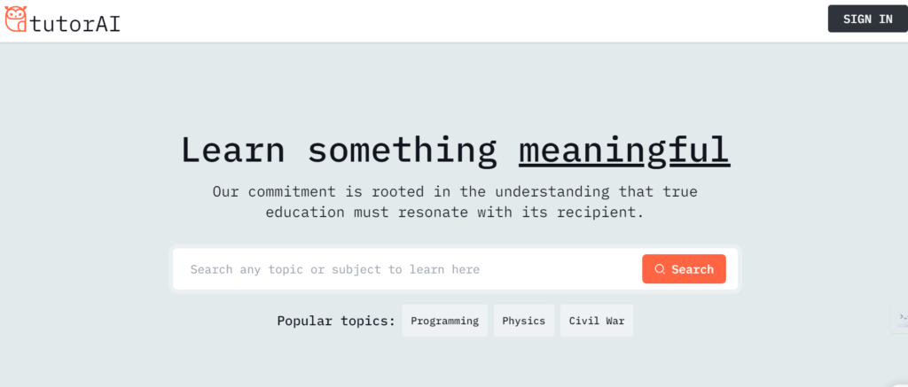 Tutor AI, for instance, is a platform dedicated to meaningful education, offering personalized learning solutions tailored to each individual’s needs. It provides customized classes in any subject to help you achieve your goals.