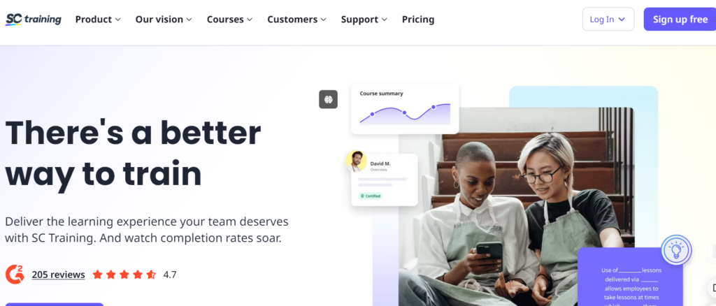 It has customizable courses and AI-powered course creation, simplifying onboarding, training, assessing, tracking, and certifying team members. Its microlearning approach ensures engaging, accessible training on any device.