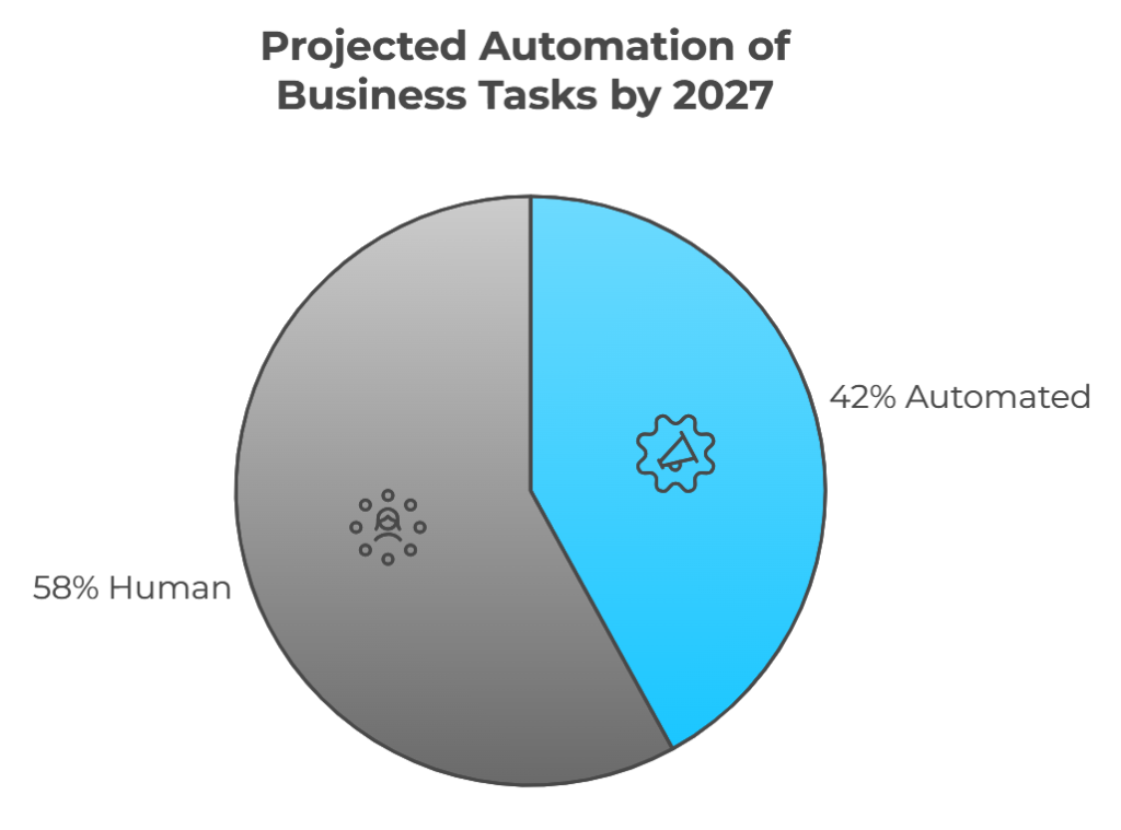 6. Today, respondents have revised their expectations for future automation to predict that 42% of business tasks will be automated by 2027. (World Economic Forum, 2023)