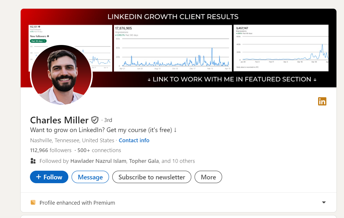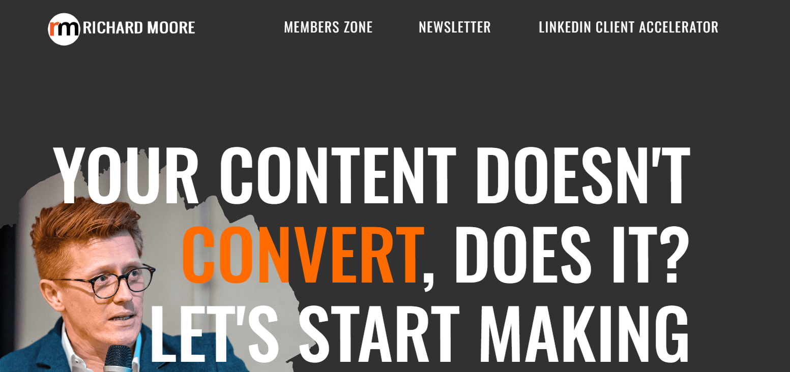 Example – Richard Moore‘s expertise lies in assisting coaches in optimizing their presence on LinkedIn, enabling them to craft compelling content, attract ideal clients, and amplify conversions.