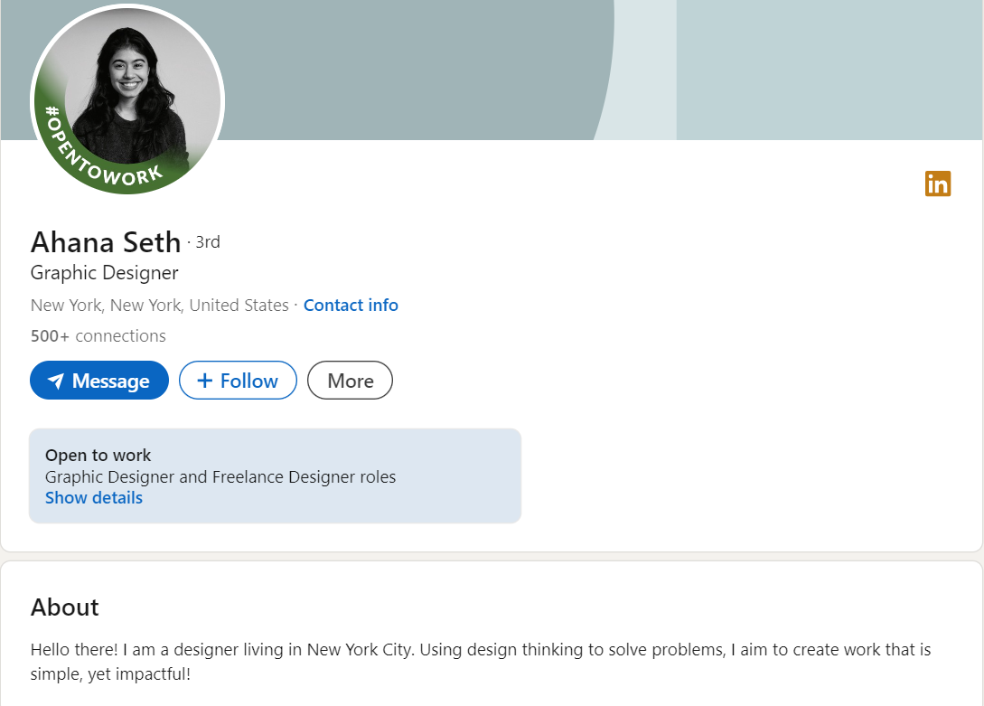 Ahana Seth, for instance, is a solo graphic designer based in New York City, renowned for her ability to blend simplicity with impact in her designs. Ahana has leveraged her diverse professional background, including roles at Caliber Home Loans, Inc., and internships at Beardwood&Co. and PepsiCo.
