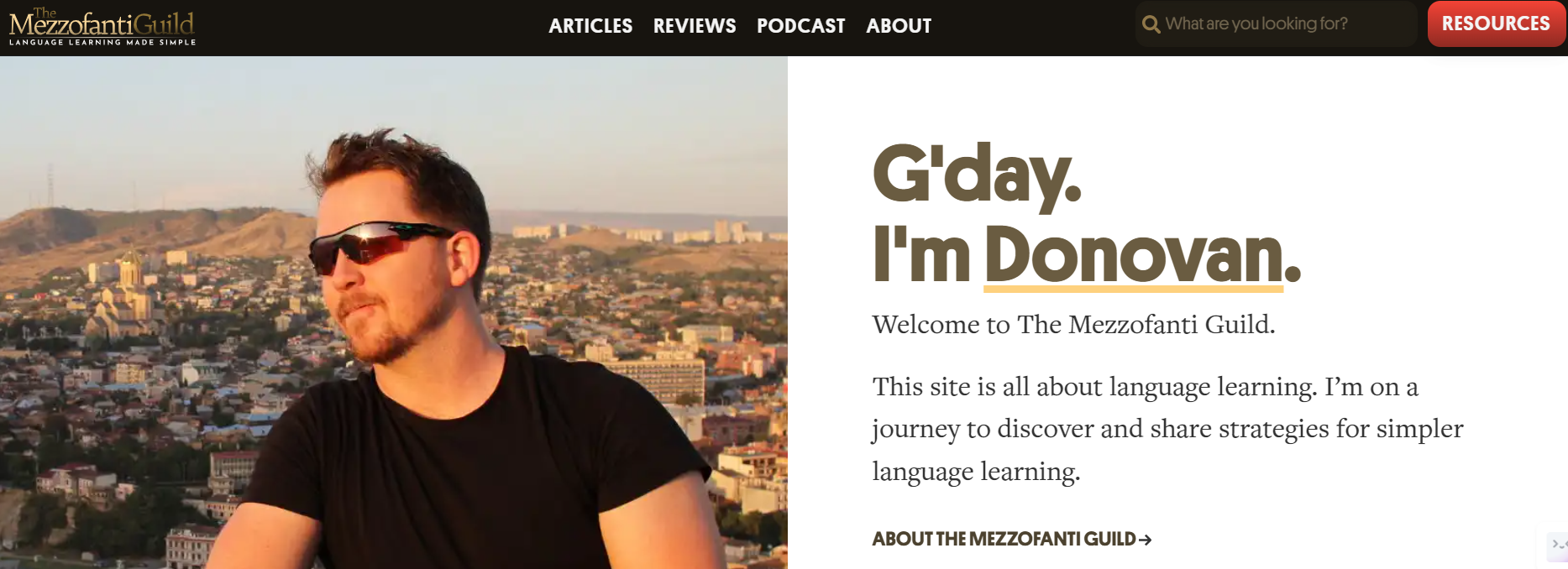 The Mezzofanti Guild, led by Donovan Nagel, offers language-learning resources, including articles, reviews, and podcasts.