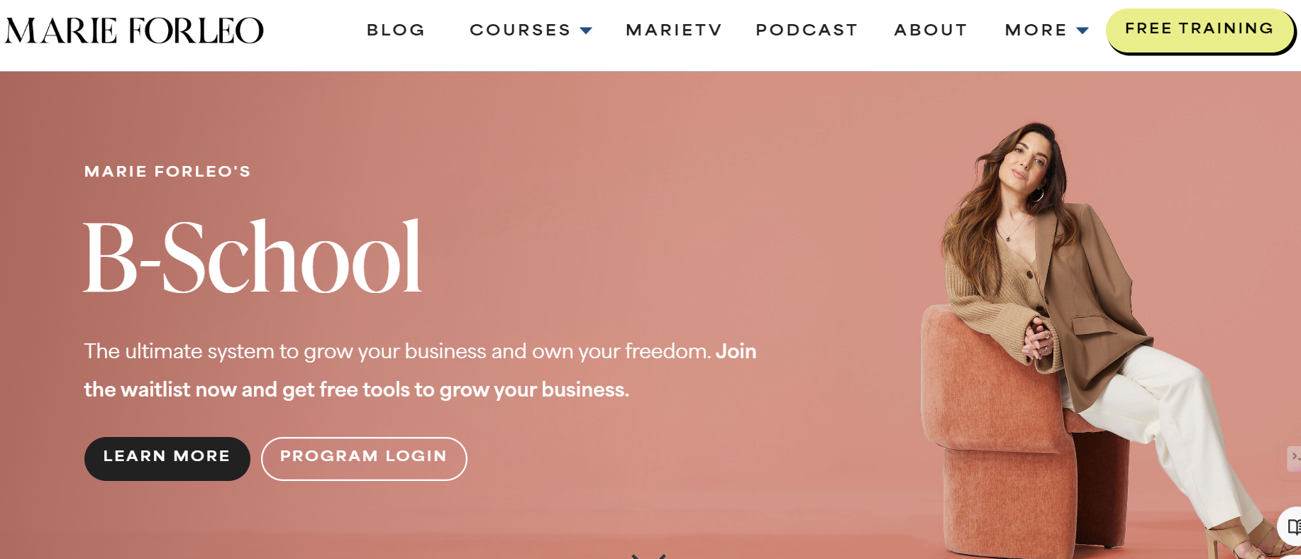 Example – Marie Forleo’s B-School is an online coaching program, catering to entrepreneurs and creatives aiming to build profitable and meaningful businesses.