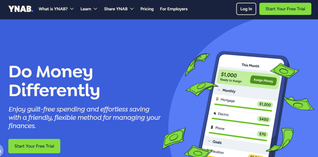 YNAB, for instance, offers to manage finances, promoting guilt-free spending and saving through its unique budgeting rules.