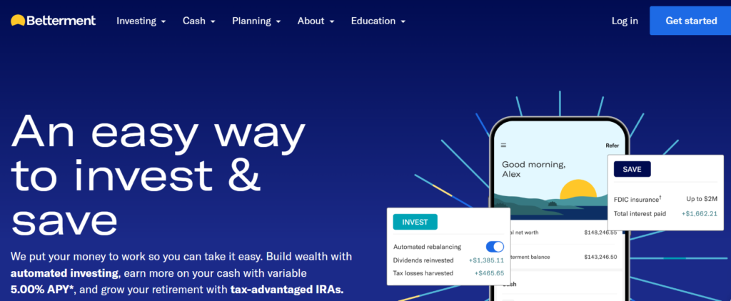 Betterment provides easy management of investments and retirement planning, backed by FDIC insurance and customer satisfaction.