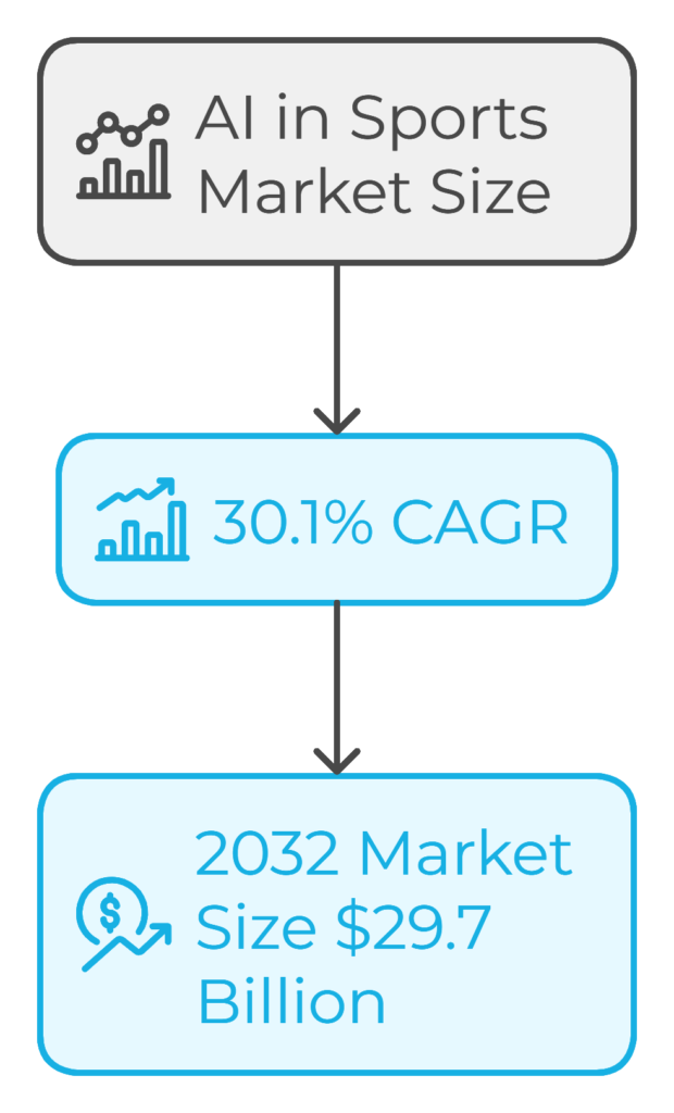The AI in sports industry is set to hit a $29.7 billion market size by 2032.