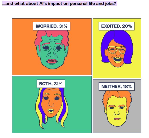 1. When asked about how they feel about the impact of AI on their society, 21% of respondents were excited, while 29% reported being anxious about the prospects of the technology. (The Verge)