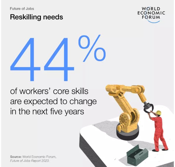 1. 44% of skilled workers are expected to reskill between 2023 and 2028. (WEF)