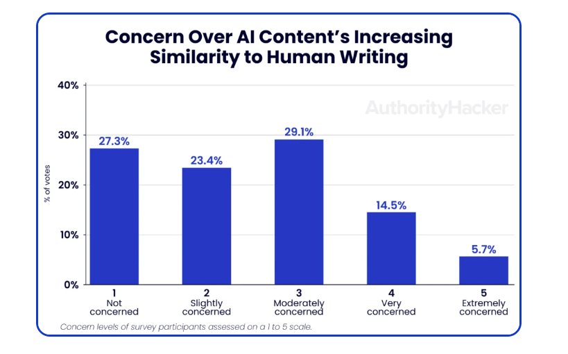 3. Over 72% of people have raised concerns about AI-generated content becoming almost indistinguishable from human-written content. (Authority Hacker)